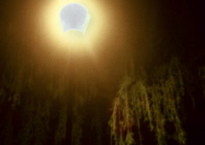 An accompanying event to the exhibition “Lack of Darkness is Fear” was an open night walk through Orunia Park, led by the artist himself. During this walk, participants could listen to the sounds of bats living in the park using a special device connected to a phone. Iwo also presented fragments of his favourite literary works that tell stories from non-human perspectives.