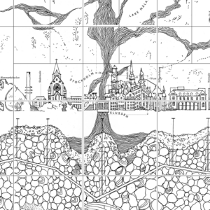 The Dear Hunter Stockholm Map examines Stockholm’s landscape as a record of long-term ecological processes and increasingly short-term human decisions. By placing ancient myths, Indigenous knowledge, and geological time alongside contemporary infrastructure, extraction, and climate adaptation measures, the map reveals tensions between care, control, and exploitation. It questions whether technical fixes alone can secure the future of land and water. Instead, the map suggests that enduring responses to climate change may require rethinking how humans imagine their place within living landscapes.