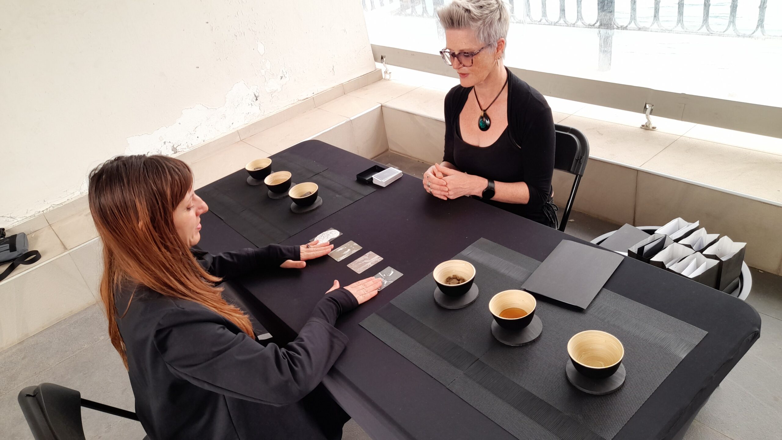 Using six elemental materials – water, air, burnt wood, honey, stone, and silt – the work invites sensory engagement, collective reflection, and political imagination.