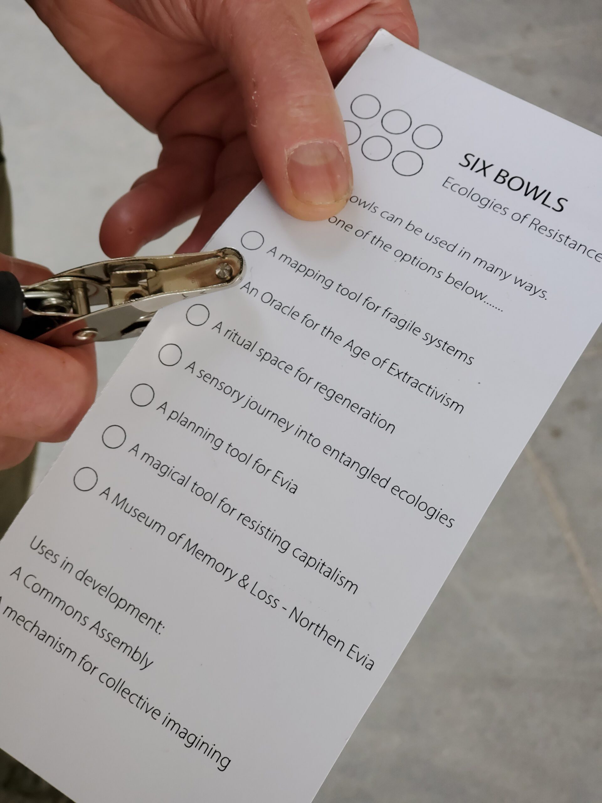 Six Bowls: Ecologies of Resistance is a participatory installation developed through research on Evia.
