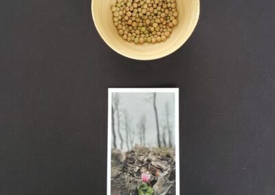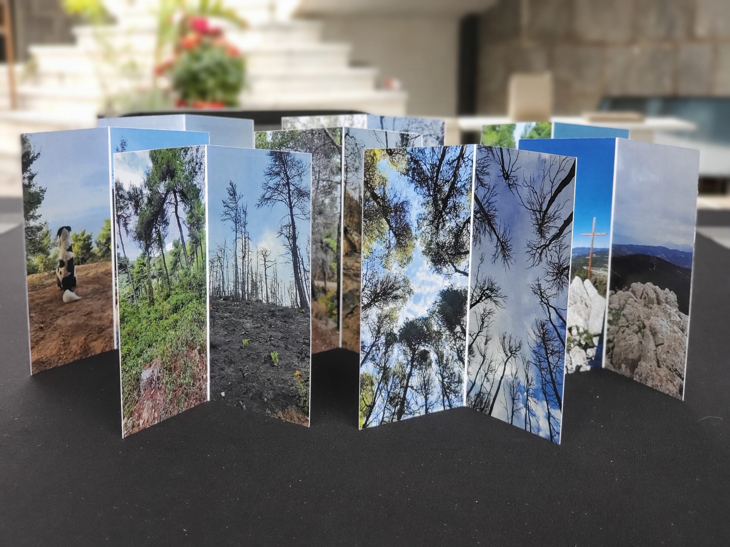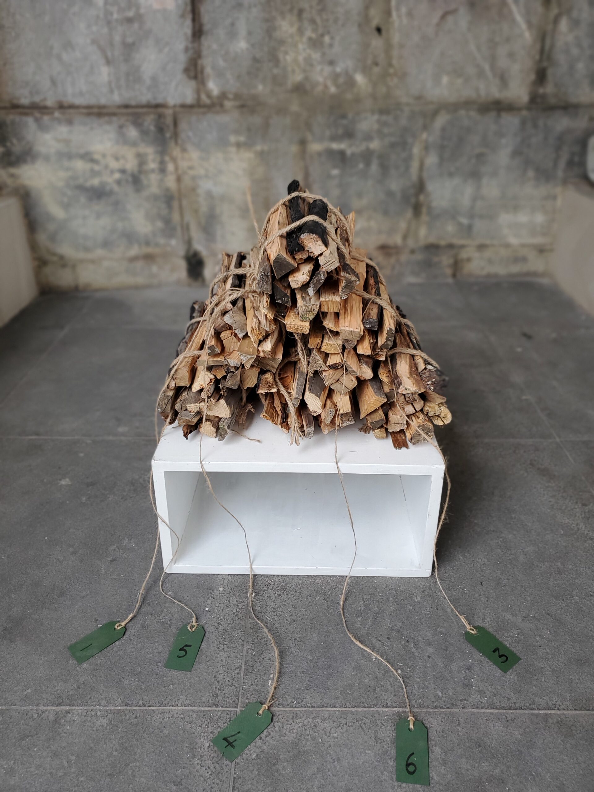 These bundles collected from within the fire zone in Northern Evia, hold reflections gathered during the artists time on the island. Shaped by the hopes, fears, and imaginings of both rural and urban lives they are offered in the spirit of continuing dialogue.