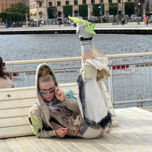 Over at Vattentorget near Slussen, Ongoing Realities presented a live performance piece titled Mälarmaran – Scouting Future Fish, a satirical yet sobering look at the future of Lake Mälaren. The performance, held on August 16th, blended dance with elements of dark humor to explore a future where clean water in the lake might run out in just 80 years.