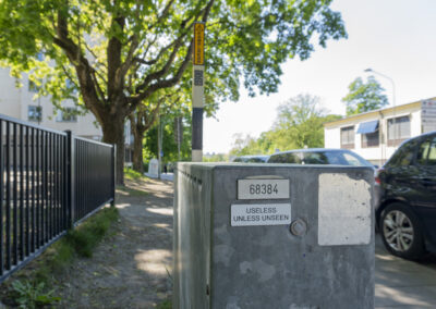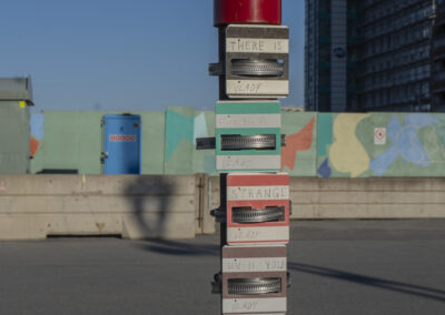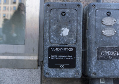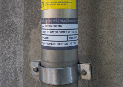 In the project Turning The Tide, led by the cultural organization Intercult, artist Vlady challenged the notion of climate change as an imperceptible phenomenon. By inserting a series of ordinary signs into the urban landscape, Vlady created tangible traces of his passage – marks that, by their very nature, are likely to go unnoticed. These subtle alterations to the cityscape serve as a metaphor for many of the obvious yet overlooked effects of climate change – phenomena that, because they unfold gradually and blend into everyday life, remain invisible and therefore dismissed or underestimated.